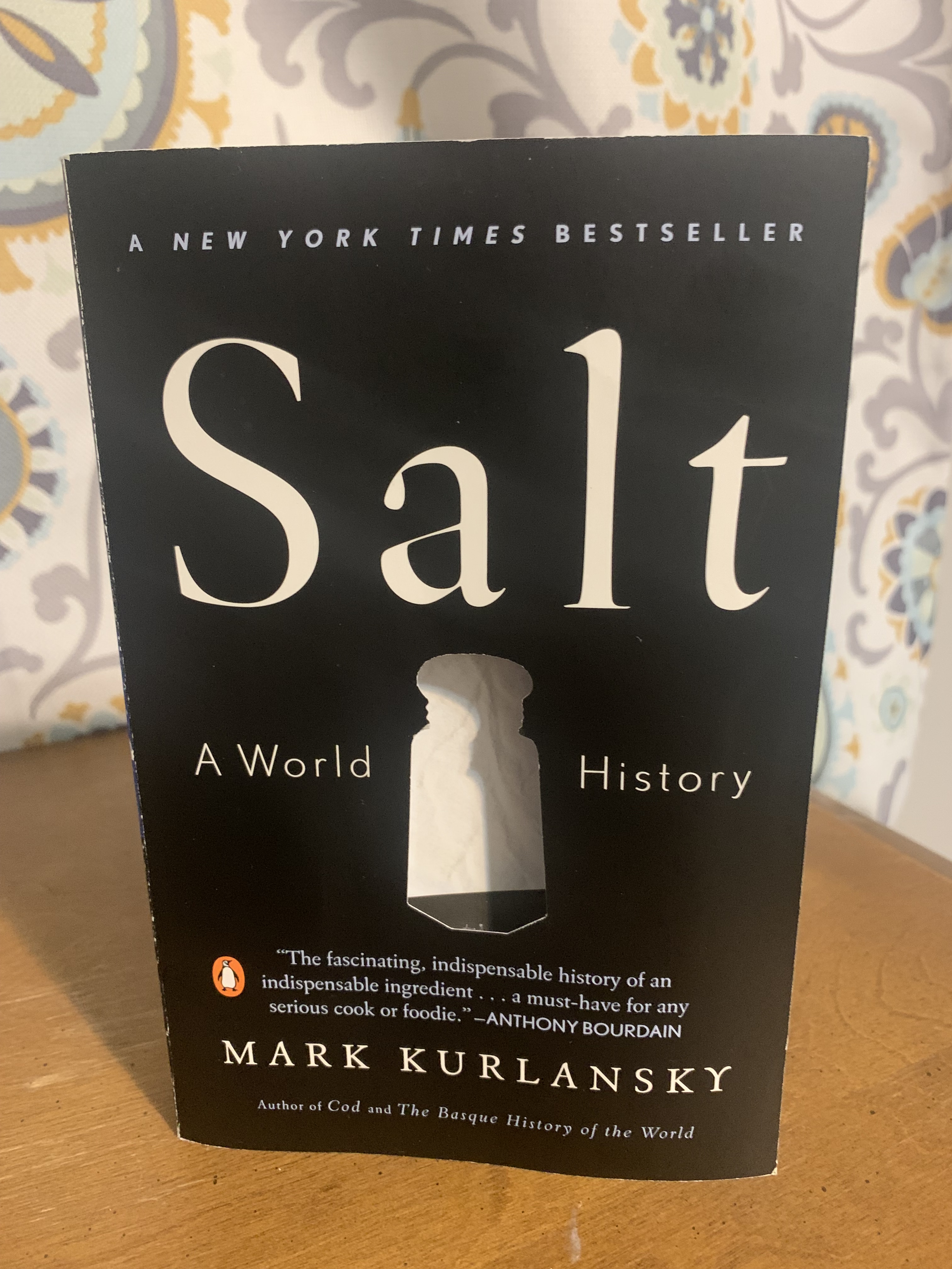 From ancient recipes and technological advancements to modern inventions and applications, taking Kurlansky from the Dead Sea to the Bahamas to China to England and everywhere in between, Salt is a much more enthralling book than one might imagine a book about salt could be, again, precisely because of how vital it has been and continues to be for humans. And not just owing to how we use and interact with it on a daily basis (often unknowingly), but because our bodies absolutely need salt to function. So, in conclusion, you won’t be salty after reading this book! (I couldn’t help myself.)