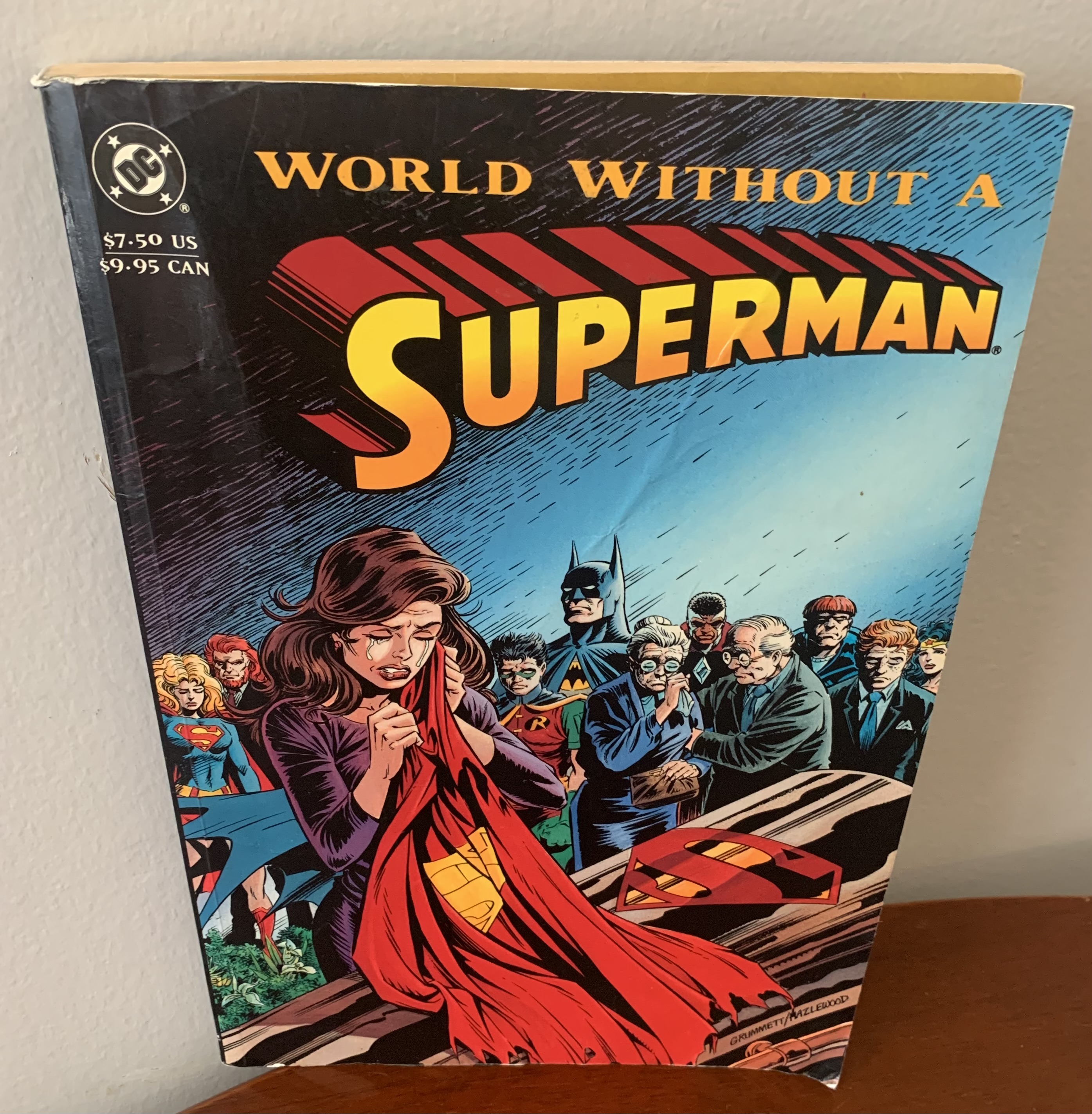 Imagine a world where Superman existed: this seemingly indestructible, incomprehensibly powerful being, who uses his power for the good of all other beings on Earth. He is so powerful, but so good, that all the other heroes of the day look to him for guidance and motivation. This being, despite his alien origins, represents the best of humanity and something to aspire toward. Then, that being is killed. The loss would be incalculable and inconceivable. But DC Comics tried to imagine that world. One of the collections in the arc after Superman is killed by Doomsday is 1993’s World Without a Superman that deals with the direct aftermath of his death. The graphic novel is curated from a number of stories printed that year by writers Dan Jurgens, Karl Kesel, Jerry Ordway, Louise Simonson, and Roger Stern. Just as Superman is the best of humanity, World Without a Superman shows his death to represent the best impulses of humanity, while also drawing out the worst unfortunately. For me, though, the most heart-wrenching aspect of the story is the reaction from Jonathan and Martha Kent as they grapple with their boy’s death, particularly under the cloak of secrecy — Superman’s death means Clark’s death, too, but nobody outside of those two and Lois Lane can know they are one and the same.